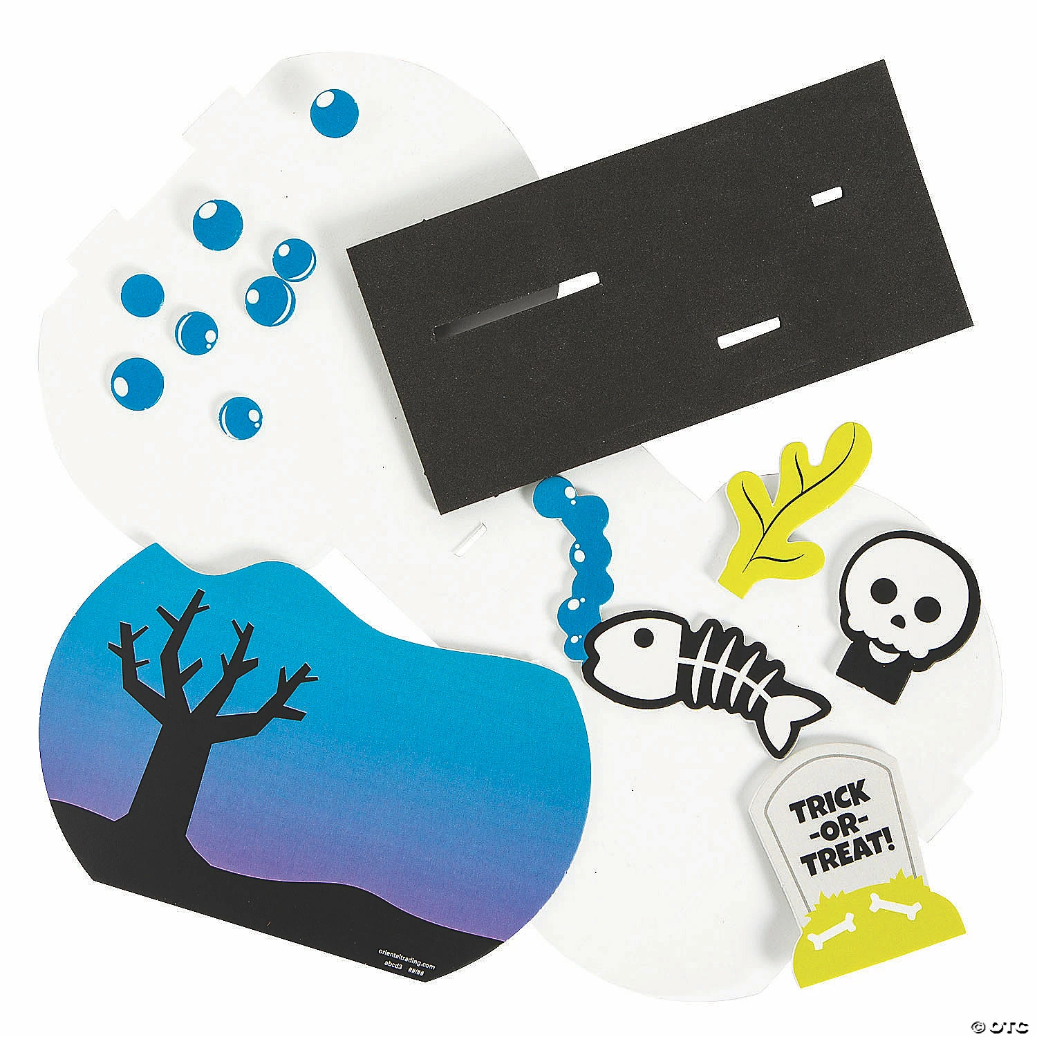 Uh-oh! Someone forgot to feed the fish again! Kids can create their own underwater underworld with this Halloween craft project that may be a particularly aqua-propriate class giveaway for students that have (or had) a class fish. No matter what happens, this fishbone friend just keeps swimming and blowing bubbles. Includes self-adhesive foam pieces and clear acetate sheets. 5″ x 2 1/2″ x 4″ Makes 12. All craft kit pieces are pre-packaged for individual use. Kits include instructions. Β© OTC