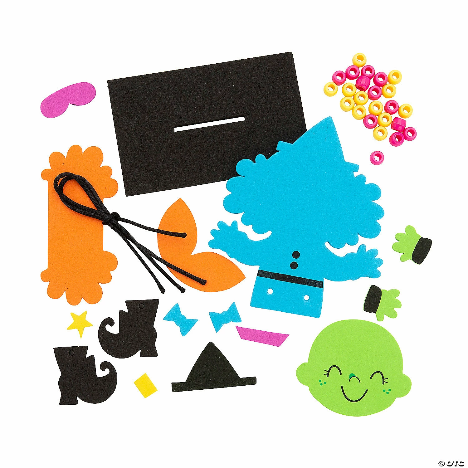 Thereβs nothing like a winsome witch with wibbly wobbly legs to get kids cackling. This Halloween craft activity will be an enchanting addition to your Halloween party activities or classroom projects. After kids have made their witch, they can bring them home to hang as as a kitchen witch or Halloween decoration. Includes self-adhesive foam pieces, plastic pony beads and satin cording. 4″ x 2 1/2″ x 6 3/4″ Makes 12. All craft kit pieces are pre-packaged for individual use. Kits include instructions. Β© OTC