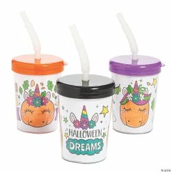 Brand new π€© Color Your Own Halloween Unicorn Pumpkin Cups with Lids & Straws – 12 Ct. π