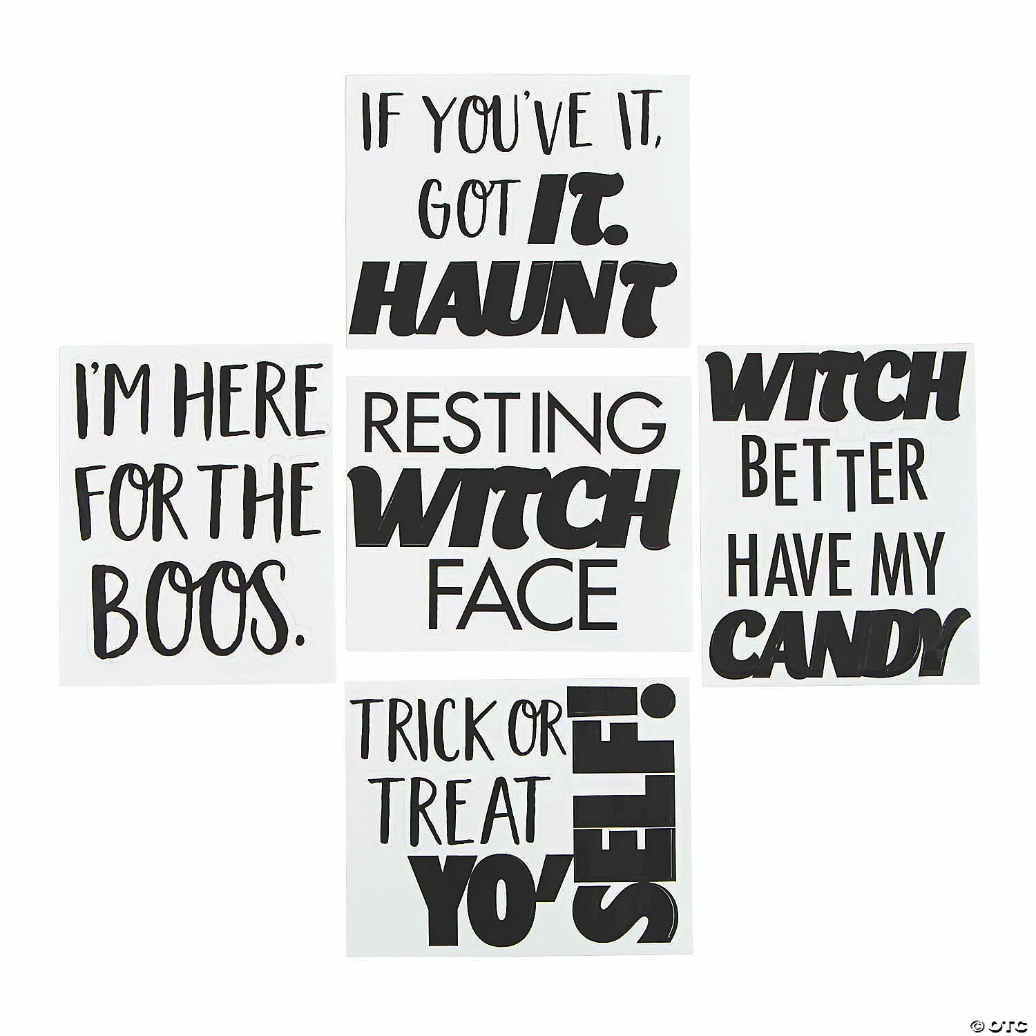 These pumpkin decals are a riot! A great addition to your pumpkin decorating supplies, or even Halloween decorations! Whether it’s a fake pumpkin or a real one, simply place these decals over the pumpkin and you’re set! Includes assorted adult humor phrases, like: “Resting witch face” and “I’m here for the boos.” Vinyl. (5 pcs. per unit) Sheets, 5″ x 4″. Β© OTC