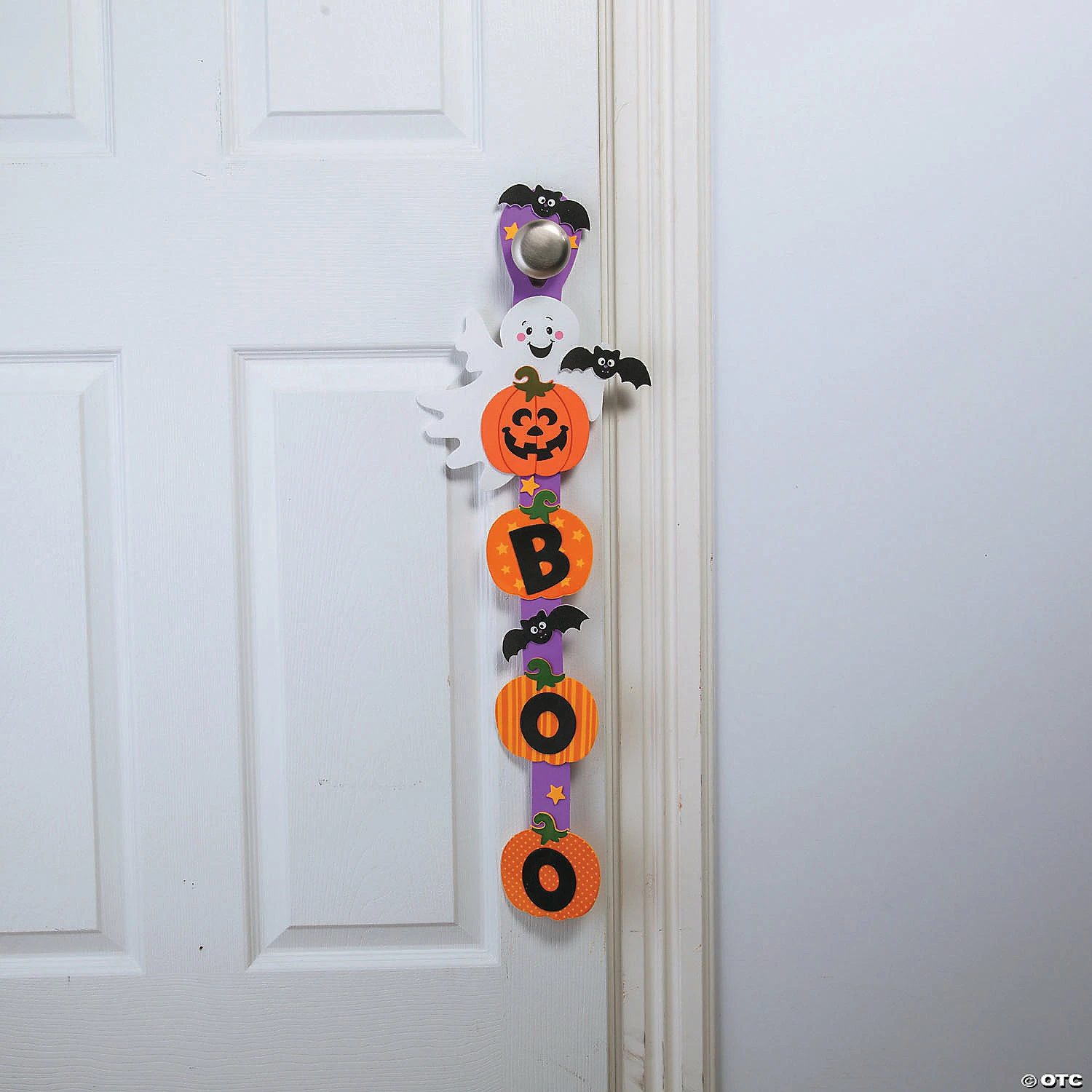 Ghost Door Hanger Craft Kit. A festive and fun do it yourself Halloween craft project. Homemade Halloween decorations make classrooms and home dΓ©cor more fun. Includes self-adhesive foam pieces. 28″ Β© OTC