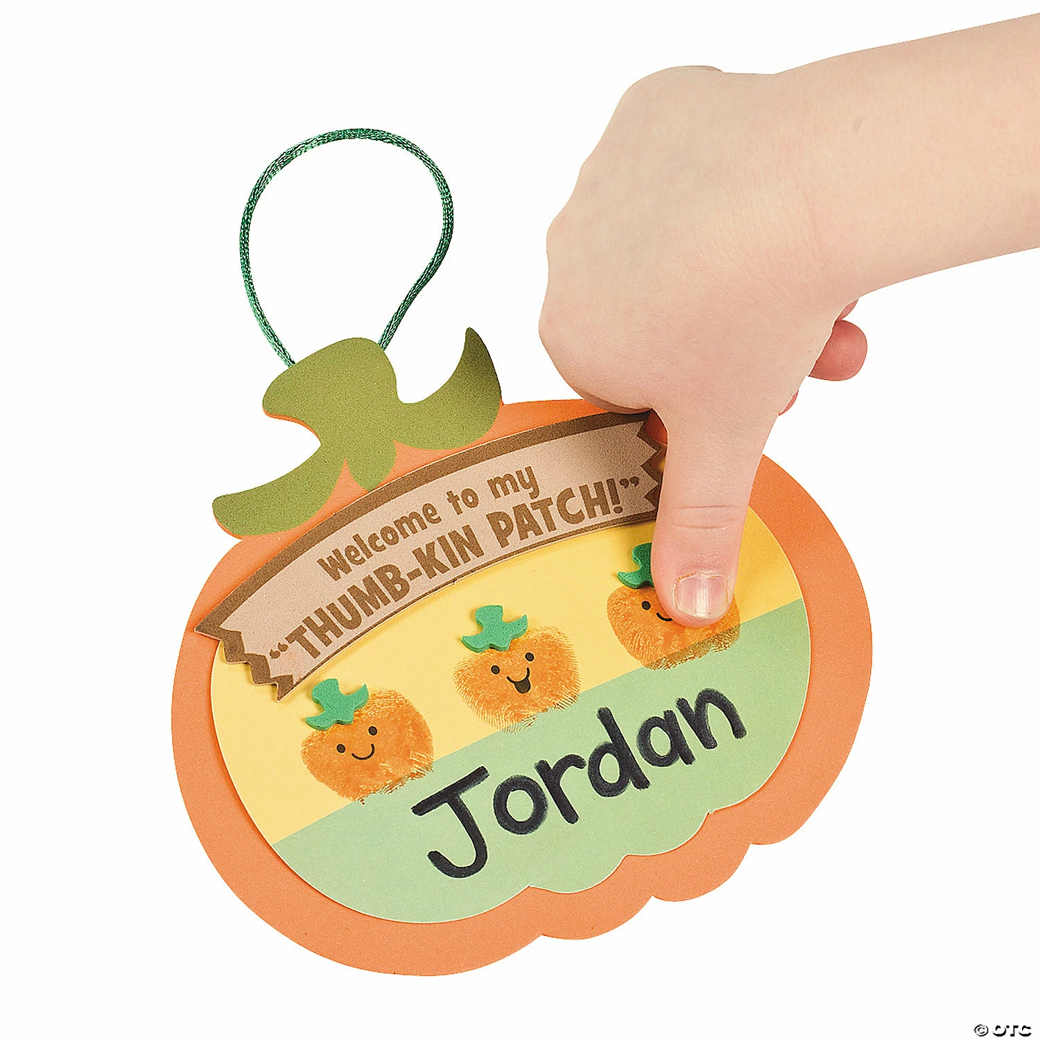 Thumbprint Pumpkin Patch Craft Kit makes fun crafts for preschoolers and toddlers as they first discover the fun of the pumpkin patch. You’ll always find the perfect pumpkins with this cool craft for kids! Each kit includes 2 orange ink pads (2 ink pads to be shared among the 12 finished projects), self-adhesive foam shapes and a satin cord. Safe and non-toxic. Personalize with your own marker! 5 1/4″ x 5″ Conforms to ASTM D-4236. All craft kit pieces are pre-packaged for individual use. Kits include instructions and extra pieces. © OTCCraft Instructions